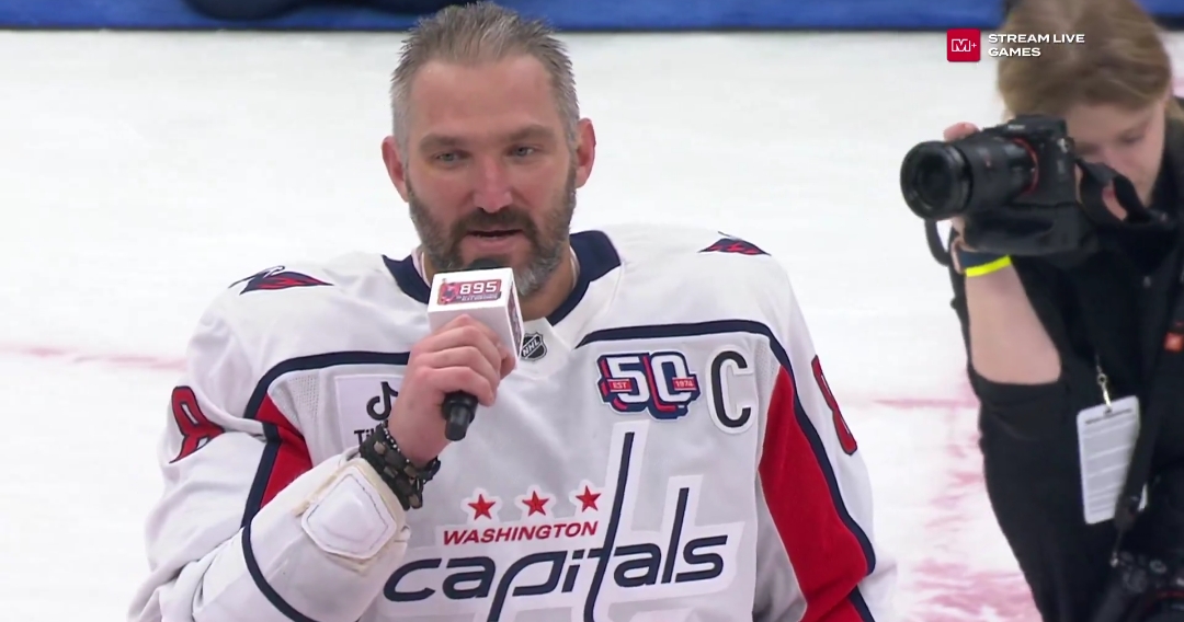 El partido se detuvo para dar paso a una ceremonia, en la que los Capitals recibieron gorras conmemorativas y Ovechkin saludó al público. En el discurso, el jugador agradeció a sus compañeros, a aficionados y entrenadores, precisando que sin ellos “nunca estaría ahí“. “Y la última cosa, todos ustedes, aficionados de todo el mundo, los rusos; ¡lo hicimos, chicos!, ¡lo hicimos!, ¡es historia!“, exclamó.
