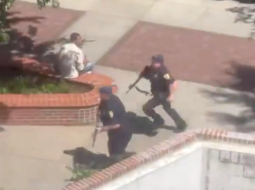Otros clips mostraron a los equipos de emergencia y al equipo SWAT invadiendo el campus.