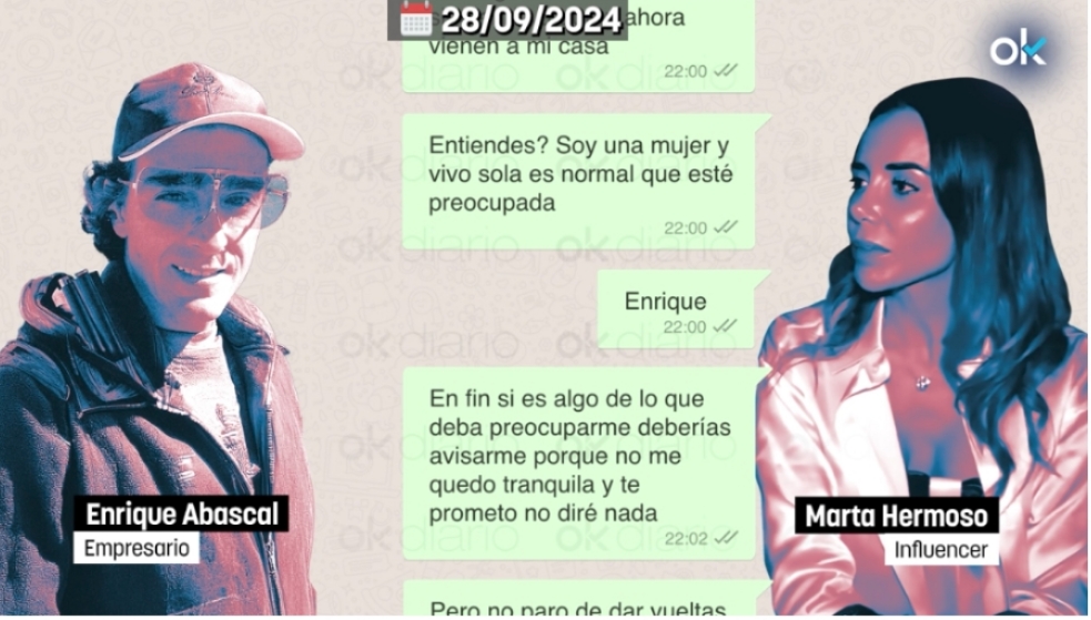 El medio español OKDIARIO ha podido acceder al sumario íntegro de la causa y a las conversaciones que la influencer mantuvo con el empresario durante su estancia en Madrid. El chat comenzó el día 25 de septiembre de 2024, cuando Abascal llegó a Madrid y contactó con Hermoso que le invitaba a encontrarse en su piso ubicado en la calle Velázquez (Madrid).