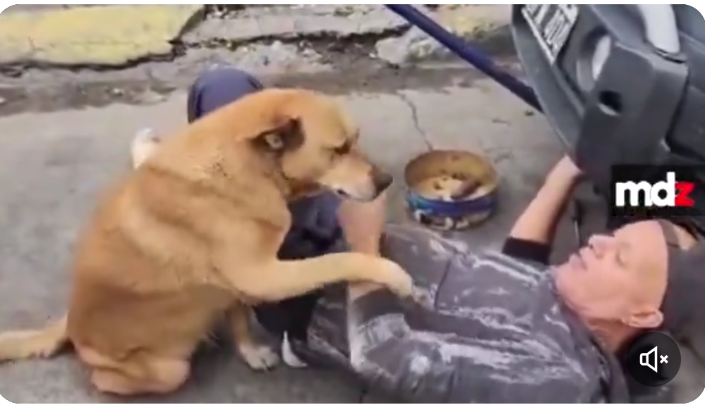 Un hombre se tiró al piso para arreglar su auto y su perra pensó que le estaba pasando algo: "No me pasó nada, boluda, estoy bien". pic.twitter.com/SomdWDeI7e