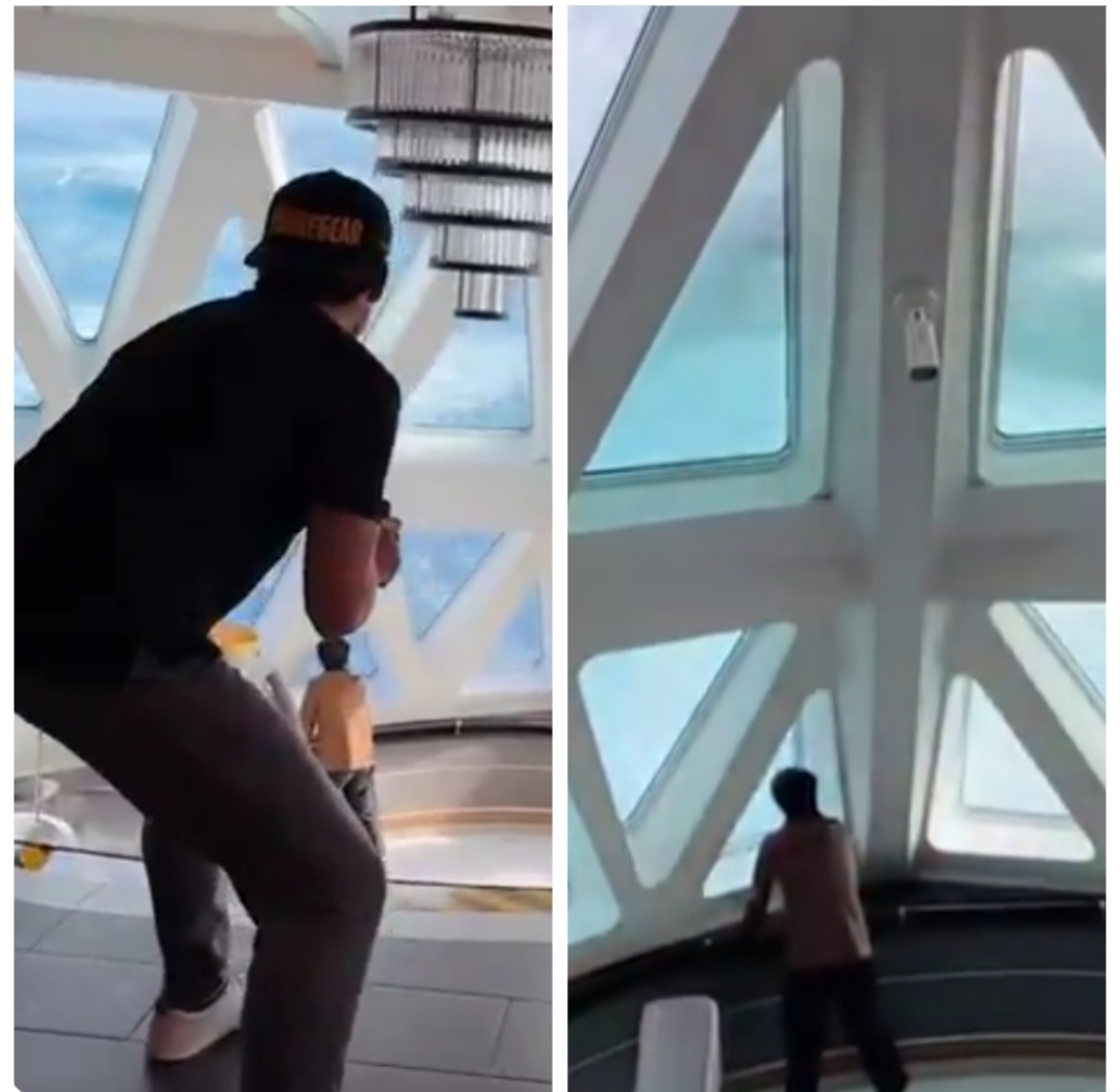 La grabación muestra a los pasajeros gritando y cayendo al suelo al tiempo que el navío se balancea por las montañas de agua.