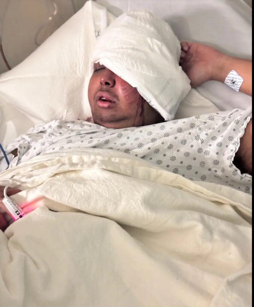 Las fuentes dijeron que el policía herido está despierto y hablando, pero todavía tiene mucho dolor y tiene programada una cirugía por un pómulo roto y una cuenca del ojo fracturada