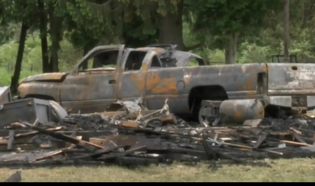 Camioneta quemada de la familia que fue salvada por los adolescentes