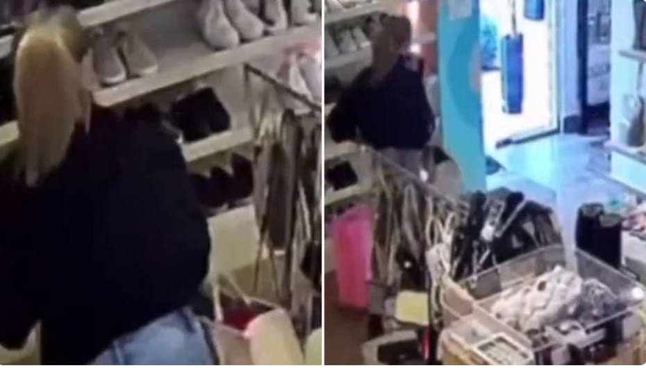 De acuerdo con las imágenes que se difundieron a través de las redes sociales, la mujer ingresó al comercio de ropa de segunda mano con una valija rosa y colocó en su interior varias prendas, al igual que en su cartera.