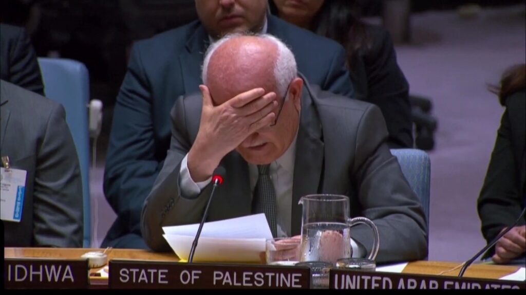 Riyad Mansour, representante permanente de Palestina ante Naciones Unidas, rompió en llanto este miércoles mientras hablaba en el Consejo de Seguridad de la ONU sobre los niños en la Franja de Gaza que mueren a causa de los ataques israelíes y de hambre.