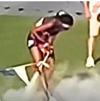 La decisión de quitarle la medalla de oro se tomó después de que Adams celebrara su victoria imitando un gesto que se hizo famoso gracias al velocista olímpico estadounidense Maurice Greene