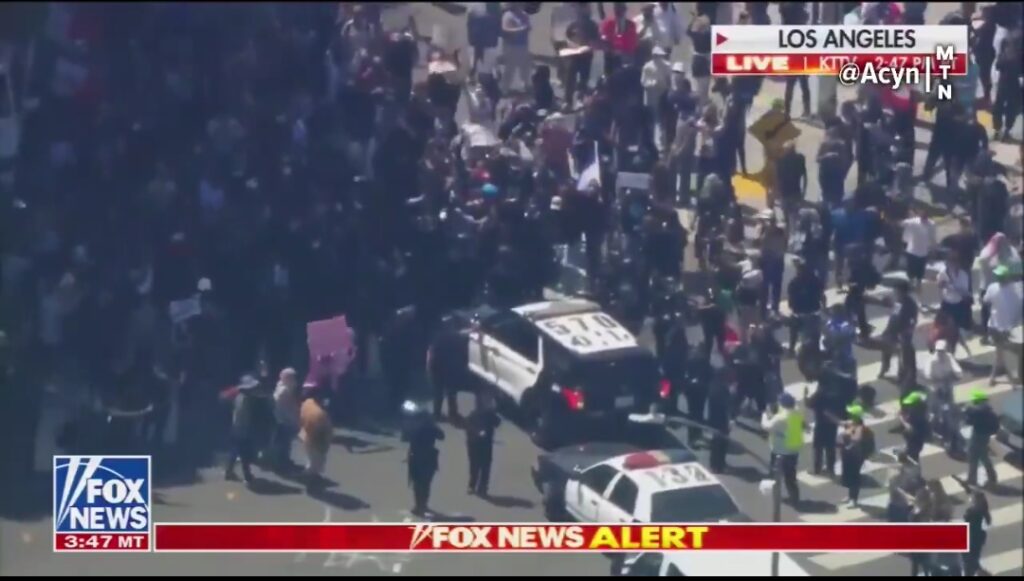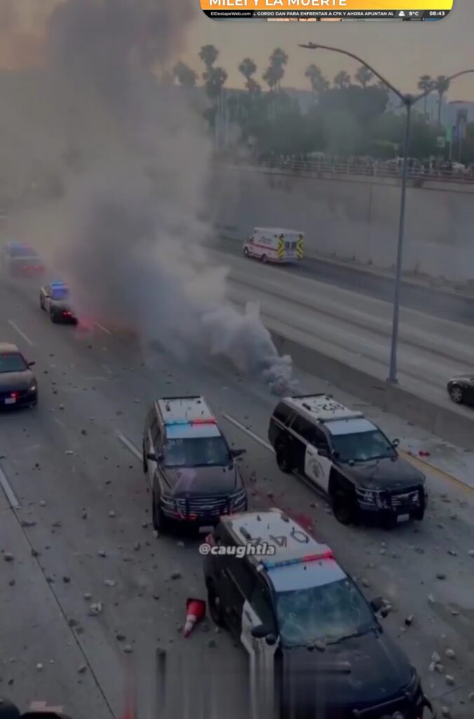 Ayer domingo 8 de junio del 2025, una multitud se dirigió a la autopista 101 de Los Ángeles y detuvo el tráfico en ambas direcciones. Posteriormente los manifestantes lanzaron piedras y otros objetos hacia las patrullas policiales que se desplazaron al lugar. Todavía la carretera sigue cerrada.