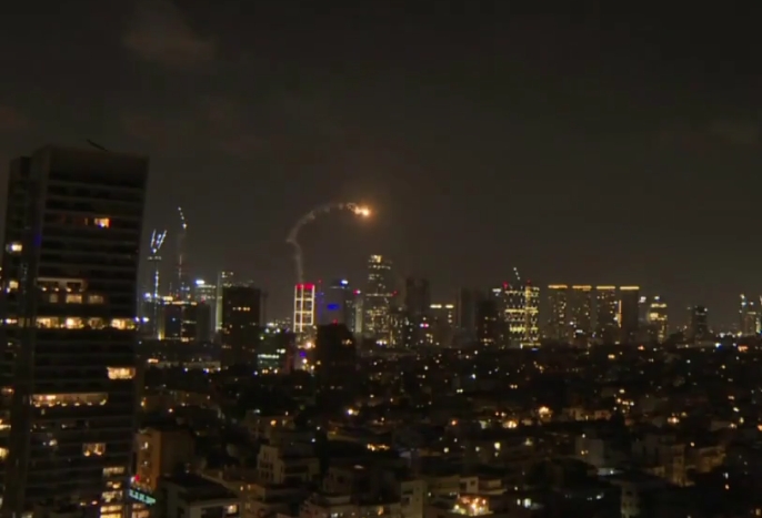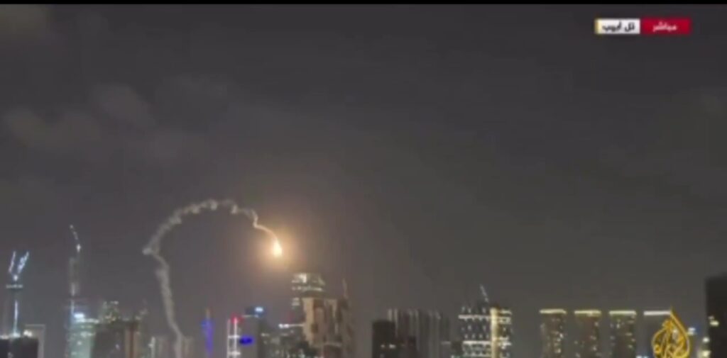 Las imágenes, difundidas por medios locales, muestran los misiles de represalia iraníes acercándose a Tel Aviv