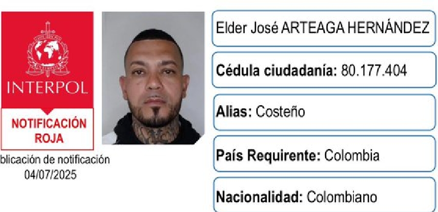 Desde el día de ayer, ‘Costeño’ estaba siendo buscado en más de 190 países por tentativa de homicidio, uso de menores y porte ilegal de armas, después de que la Interpol emitiera una circular roja en su contra, al conocerse que estaba planeando huir del país.
