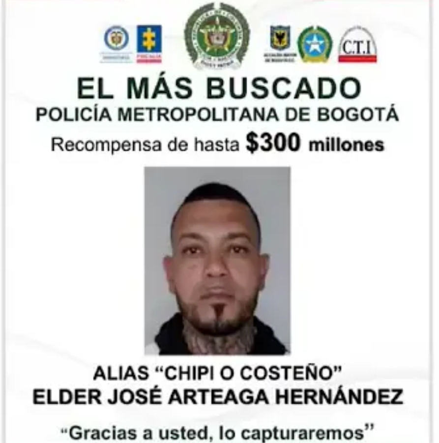 Las autoridades colombianas capturaron la madrugada de hoy sábado 5 de julio del 2025 en Bogotá, capital de Colombia a Elder José Arteaga Hernández, alias ‘Chipi‘ o ‘Costeño‘, presunto “principal coordinador” del atentado contra el senador y precandidato presidencial Miguel Uribe Turbay, ocurrido el pasado 7 de junio del 2025, recoge el medio colombiano El Tiempo citando fuentes policiales.