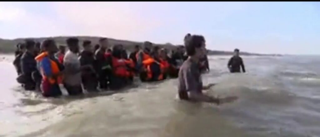 Un video compartido ayer viernes 4 de julio del 2025 por el medio británico BBC muestra la inusual intervención policial, una vez que los policías franceses entran en aguas poco profundas y clavan un cuchillo en la embarcación de hule, cargada con decenas de personas e incluso niños.