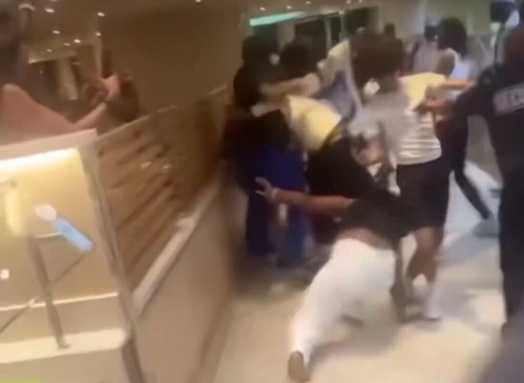 Un video que circula en redes sociales muestra a varias personas golpeándose entre sí en un bufé del barco.