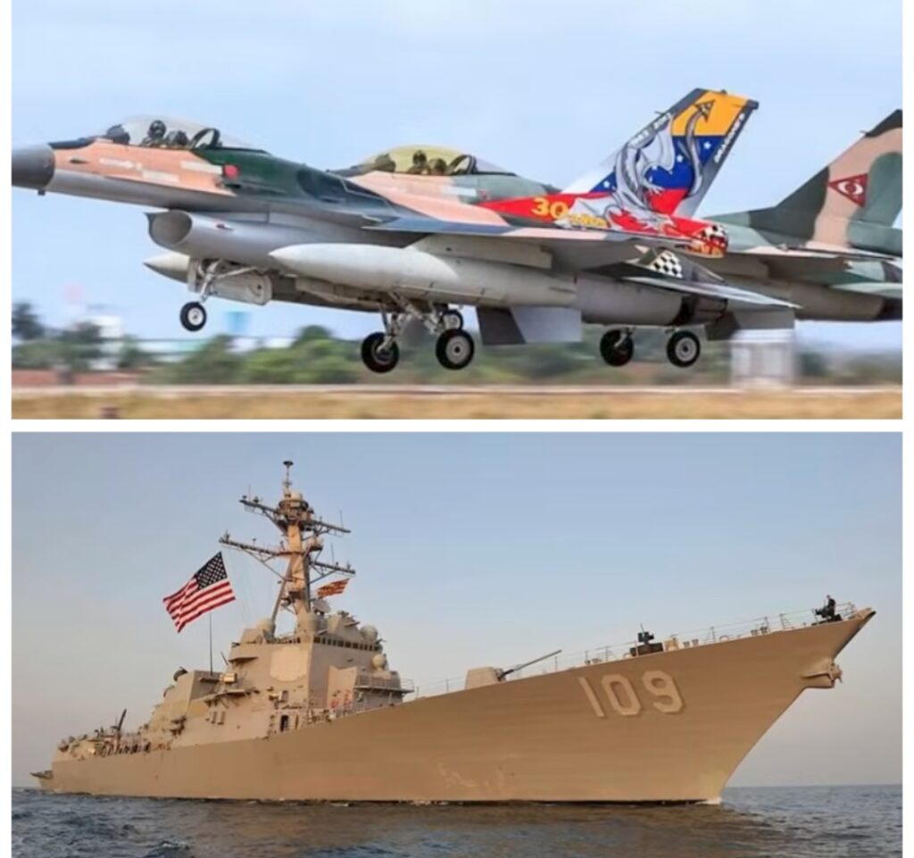 Aviones caza venezolanos y un destructor estadounidense, foto ilustrativa