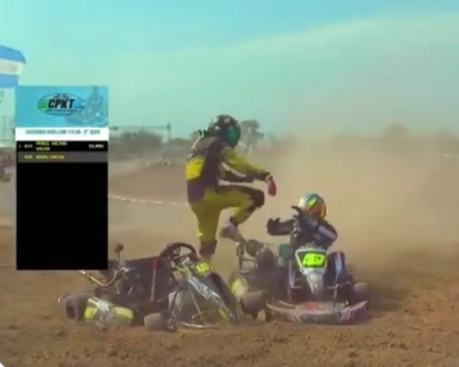El incidente, ocurrido el fin de semana del 31 de agosto del 2025 durante un campeonato provincial en el kartódromo de la ciudad de Sáenz Peña, fue captado por las cámaras de la trasmisión televisiva y se viralizó en los últimos días en redes sociales.