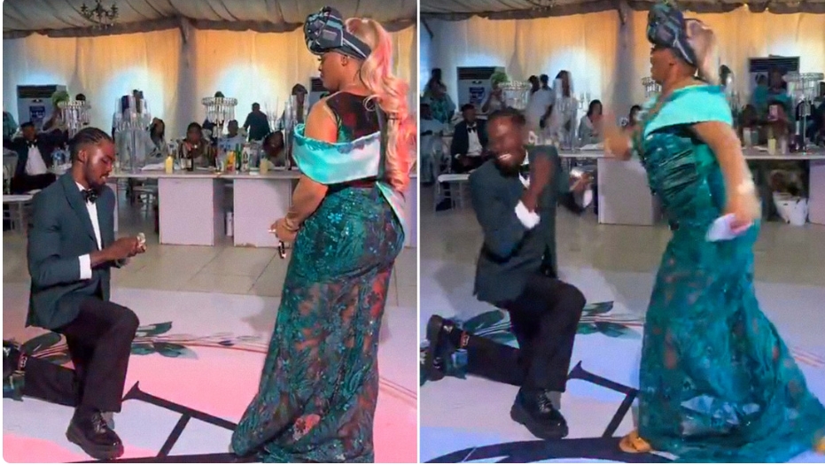En un dramático video que se ha hecho viral, se ve a un joven nigeriano hincarse para sorprender a su novia con una propuesta de matrimonio cuando esta se diera la vuelta.