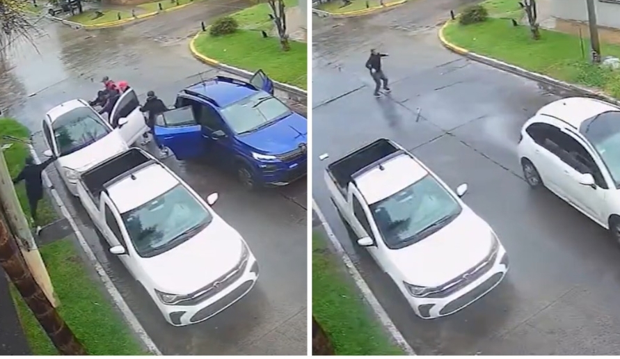 Cámaras de seguridad en la localidad bonaerense de San Justo en Argentina grabaron el momento de un violento asalto perpetrado por varios delincuentes armados.