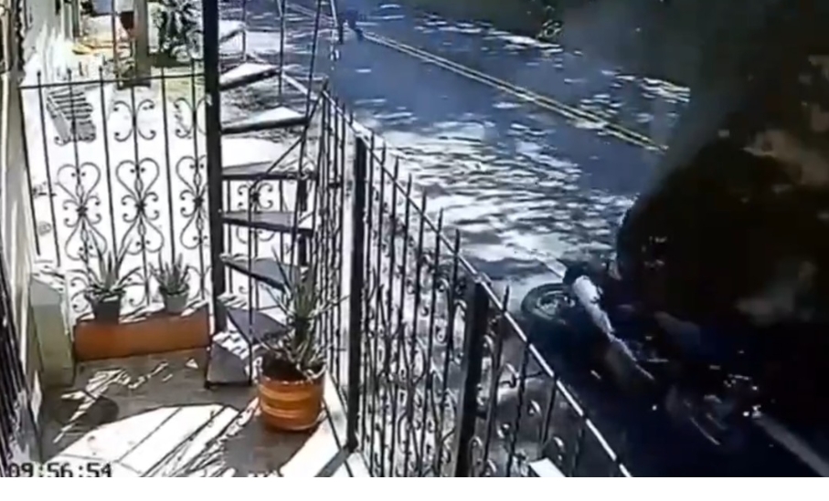 El momento fue captado por una cámara de seguridad de una vivienda cercana. Las imágenes muestran la rápida reacción de los dos hombres, quienes lograron escapar a tiempo, sin embargo, la motocicleta no corrió con la misma suerte y quedo destruida.