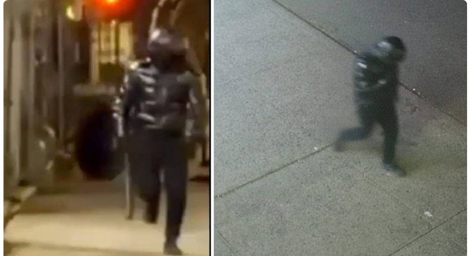 El Departamento de Policía de Nueva York publicó imágenes del sospechoso, quien iba vestido completamente de negro y fue visto por última vez corriendo hacia el oeste en dirección a Riverside Park.