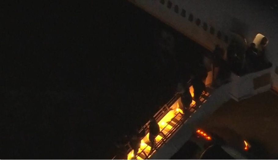 En las imágenes se ve al mandatario saliendo del avión, esposado y acompañado por decenas de agentes militares