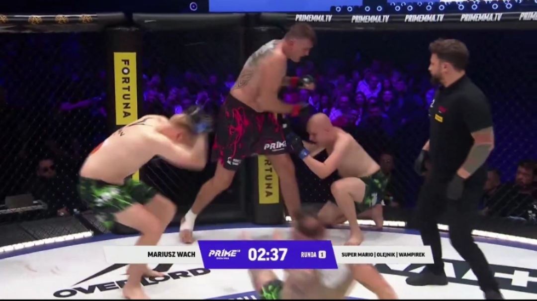 El boxeador polaco Mariusz Wach, quien supo competir con figuras de peso pesado, destrozó a tres oponentes en una pelea de exhibición de MMA.