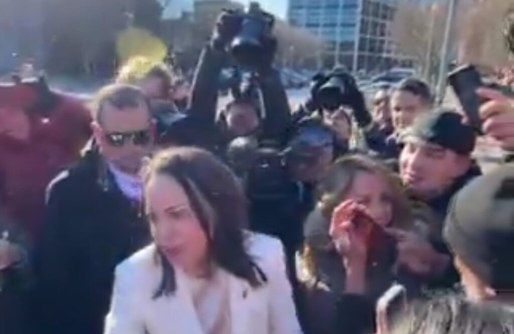 A su salida de la Casa Blanca, Machado no ofreció declaraciones a los reporteros que estaban en el lugar, pero llegó a esbozar unas palabras cuando se acercó a saludar a algunos connacionales.