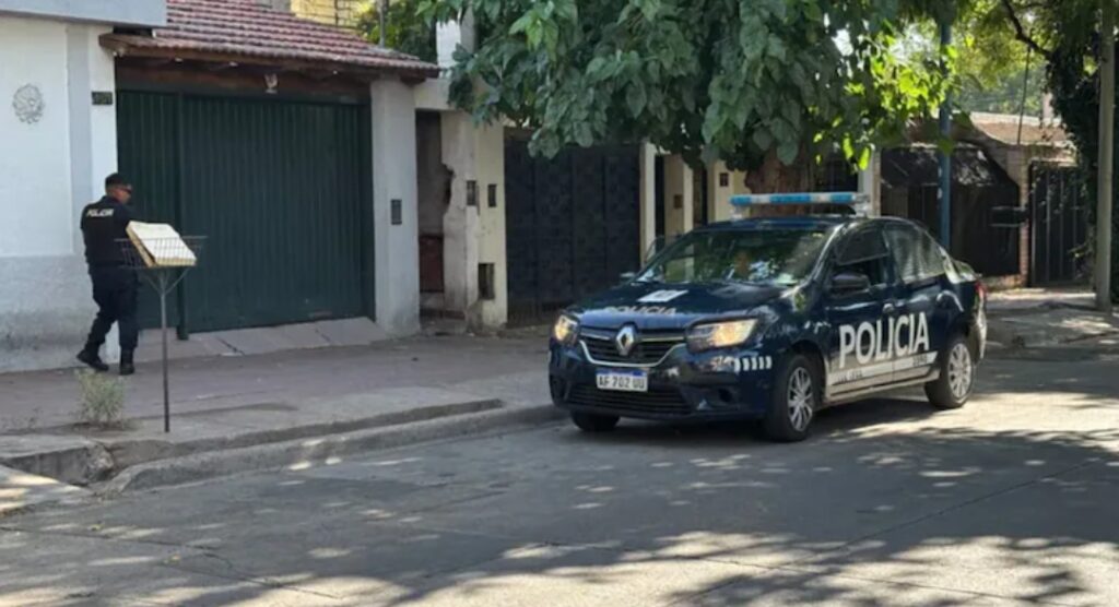 Policías frente a la casa en dónde ocurrió el asesinato de Joaquín Isaías Morales Contreras en Mendoza, Argentina