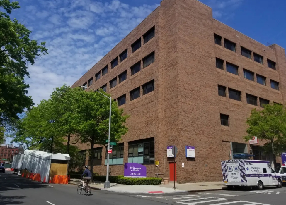 Policía de New York y el hospital NYU Langone Health en Brooklyn, New York
