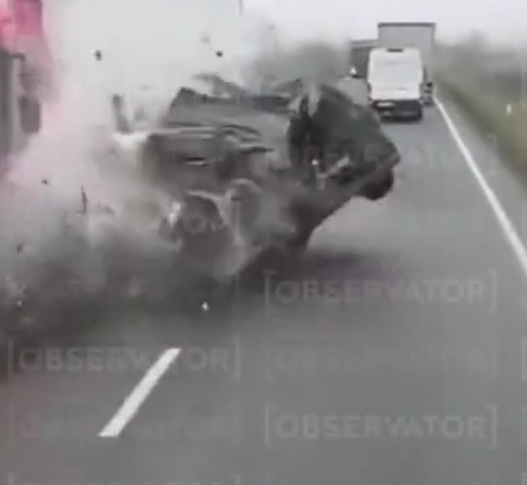 Las imágenes muestran cómo la camioneta en la que viajaban los hinchas, que se trasladaban desde Grecia hasta Francia para ver jugar a su equipo, queda parcialmente desintegrada por el brutal impacto.