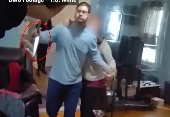 Las imágenes de la cámara corporal muestran a los agentes ingresar a la vivienda con normalidad. Al encontrarse con Jabez Chakraborty, este sostiene un cuchillo en la mano y se acerca a ellos. Tras insistir en que se desarme, el oficial abrió fuego, hiriéndolo cuatro veces.