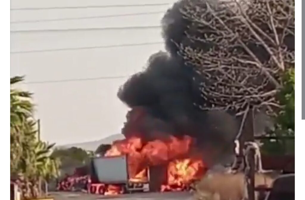 Camión incendiado en la carretera de Tapalpa, Jalisco